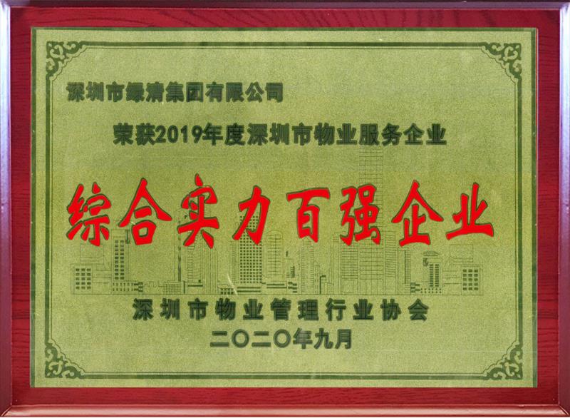 “2019年度深圳市物業(yè)服務(wù)企業(yè)綜合實力100強(qiáng)企業(yè)”獎項