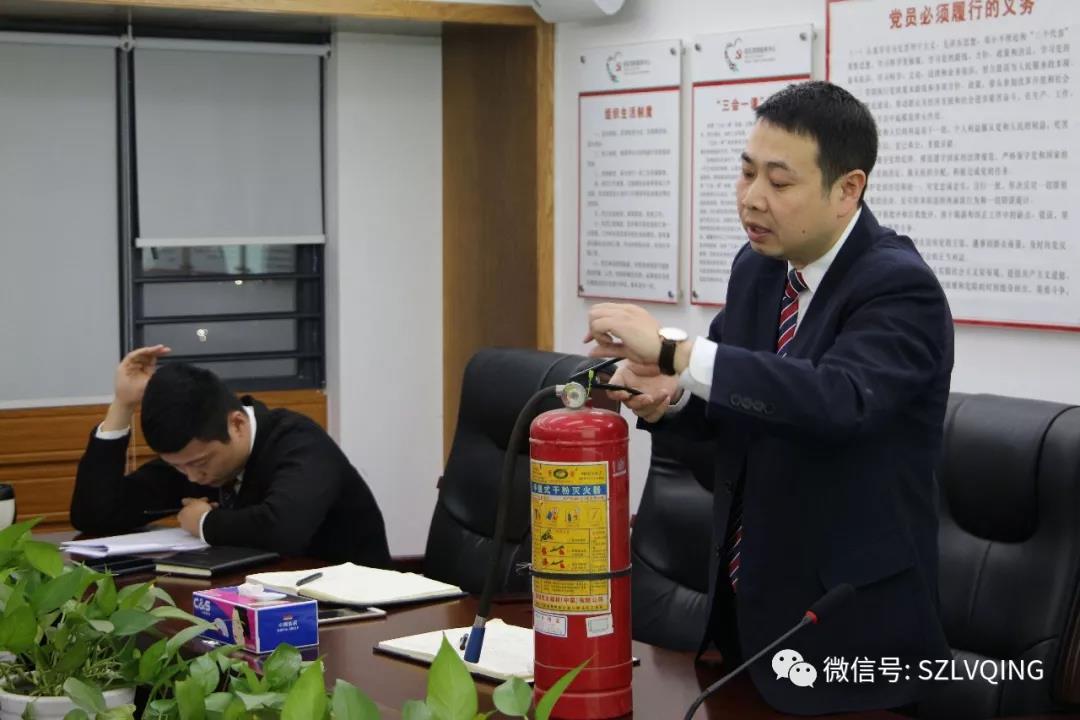 同時督促后勤部、行政部散會后及時對公司內部所有消防設施進行大排查,確保遇突發事故器材正常使用,并現場為員工演示講解了滅火器的操作使用,隨后播放了視頻解說。